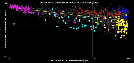 Performance of All Texas Students (EDvNED). This version of ScatterBrain (Javascript) has