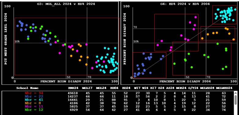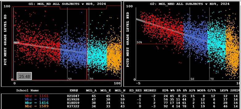the graphs indicate that the low-income percentages for these 12 schools